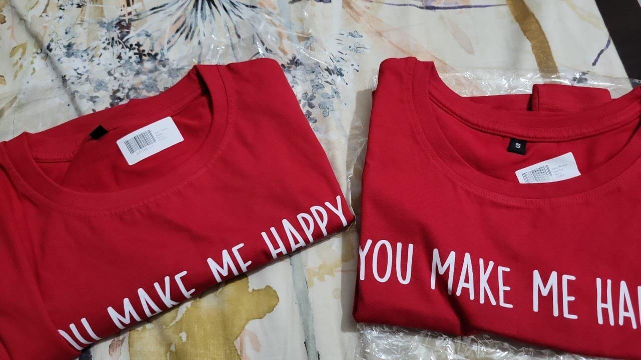 You Make Me Happy Pure Cotton Matching Couple T shirts (Set of 2)